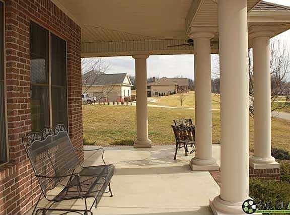 Enjoy country living close to town. This home sits on a hill overlooking the countryside. The large covered porch with stately columns wraps around the home leading to the beautiful terrace rock garden in the back. 9'ceilings in all the rooms plus 11' ceiling in the living room. The master suite has a cathedral ceiling with walk-in closet. Large master bath with garden tub, double sinks, and full shower. Ceiling fans throughout. The large eat-in kitchen has a center island.