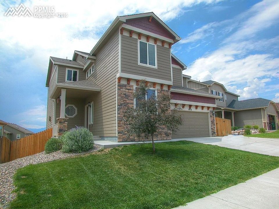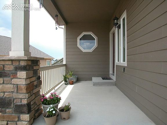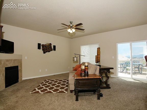 No need to go shopping for a new home when you can move right into this spacious 2 story home with fully finished walk-out basement. You will love this very open floor plan with lots of natural lighting from the minute you walk in the front door. Loaded with lots of upgrades including granite counters in kitchen & all bathrooms, tile flooring, enlarged 12X16 deck & patio, central air. Great room with gas fireplace walks out to deck with fabulous mountain views. The great room is open to the dining room & gourmet kitchen- featuring granite counters, roomy breakfast bar, stainless steel appliances including gas range oven & ample birch cabinets. You will find an office & powder room on the main. The upstairs has a very spacious master with siting area, 2 sided gas fireplace, 5 piece bath & large walk in closet. 3 more bedrooms, hall bath, laundry room & loft on the upper level is a plus! Downstairs the finished walk-out basement offers a huge family room, 5 bedroom with full bath & storage room. Close to parks, shopping, restaurants, Ft. Carson, Peterson