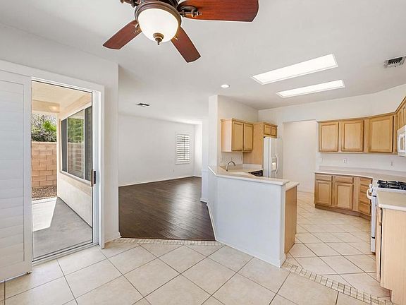 Step into the Barbados model home in Sun City Palm Desert, where simplicity meets comfort. The front yard complimented with desert landscaping invites you in, setting the tone for a tranquil living experience. Inside, lots of natural light streams through the windows, illuminating the living areas and kitchen. The kitchen offers wooden cabinets and Corian countertops. The guest bedroom and bathroom feature cultured marble counters. Retreat to the cozy master bedroom and bathroom, complete with dual vanities and a spacious walk-in closet, perfect for relaxation and organization. Outside, the expansive backyard beckons with desert landscaping framed by rocks, cacti, and palm trees. Enjoy the serenity of nature in your own private space. Sun City Palm Desert offers a wealth of amenities including 3 clubhouses, gyms, pools and spas, dog parks, sports courts, golf courses, waterfalls, and more, ensuring a vibrant and fulfilling lifestyle for residents.