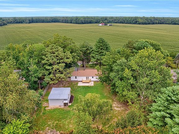 You are going to LOVE this RENOVATED ranch situated on an ACRE lot with an OVERSIZED DETACHED GARAGE. 2023 UPDATES include; NEW Vinyl Energy Efficient windows, NEW HVAC, NEW LVP flooring, NEW lighting throughout, granite counters, REFINISHED cabinetry, Tiled backsplash, FRESHLY painted interior, UPDATED bathrooms, refaced deck, new garage siding and so much more. As you walk in you're greeted with a spacious family room that flows into the dining and gourmet kitchen. The kitchen is equipped with a custom island, stainless steel appliances, tile backsplash & updated lighting. Off of the kitchen is the back door leading to the new deck, paver patio & massive fenced-in backyard with detached garage equipped with electricity overlooking a peaceful farm! There are 4 bedrooms with TWO primary suites. The Primary suite with walk in closet & luxury bath boasting a tiled shower, new vanity and tile flooring is on the right side of the home. The hall bath has a tub and shower as well as an updated vanity w/ granite counter. The second primary bedroom offers two closets, ensuite bath access and a ceiling fan. The 3rd and 4th bedrooms both have lighted ceiling fans & ample closet space.