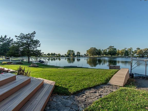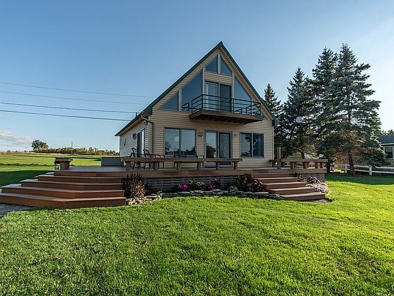 Magnificent boaters' paradise with over 3 acres of land, sweet 2 bedroom 2 bath home and massive 4 car garage and 5 bedroom bunkhouse. Come check out this truly unique one of a kind lake front home or cottage and see all that it has to offer! Beautiful boating, swimming and fishing waterfront that is super protected and good deep water! Charming A-Frame Style Chalet cottage with windows everywhere and incredible views from every angle. Beautiful open floor plan with bright and cheery open kitchen dining living room combo. Plus a gas fireplace for those chilly nights! First floor bedroom and bath. Super fun open suite upstairs with private balcony. Owner has meticulously maintained and upgraded this property and also includes a pristine maintenance free expensive plastic deck (newer very expensive no maintenance material) to enjoy all three seasons! Massive 4 car plus barn/garage that boasts plenty of storage on top of vehicles. Second floor is a beautiful bunk area with 5 bedrooms, full bathroom, kitchenette and TV area plus large maintenance free deck. This property is absolutely incredible and there is tons of room to do more with the over 3 acres of level land! Mostly furnished!