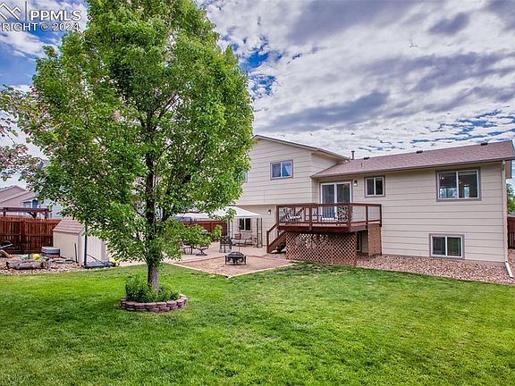 Welcome home to this beautifully maintained property. This home is truly move-in ready and given it's a garden-level home, it won't disappoint in bringing tons of light into every room! On the main level, you'll love the hardwood flooring and engineered flooring on the upper level. This home has room for everyone in your family with 5 bedrooms, a living room, a family room and additional space in the lower level to accommodate whatever your imagination brings to life: 2nd family room, office, workout room, etc. Let your imagination run wild. And if you have children, you're sure to like as much as the current owners, the opportunity for them to have their own space in the lower level given it has two bedrooms, but if you have younger children, you'll find comfort in having them on the upper level next to the primary ensuite. That being said, it is a house your family can grow into and be very comfortable for an extended time or forever! The yard is completely landscaped front and back to include an automated sprinkler system and mature trees lining the rear of the property allowing for noise reduction & privacy. Imagine the fun you can have in the summertime w/the seasonal portable pool, and plenty of room to BBQ and have family gatherings with the upper deck and lower extra-large concrete patio. It is an entertainer's dream. The large shed allows for additional storage while the extra wide driveway space (an additional 6 feet!) allows for extra parking opportunities. Dusk-to-dawn lights on the front of the property allow peace of mind when you're traveling without worry for a huge electric bill. Come see this truly gorgeous home, fall in love, and make this a property you will enjoy for years to come. There is nothing here for you to do except move in and enjoy all the current owners have done to make the property everything you need to enjoy life! Short commute to Ft. Carson as well as both Peterson & Schriever space force bases.