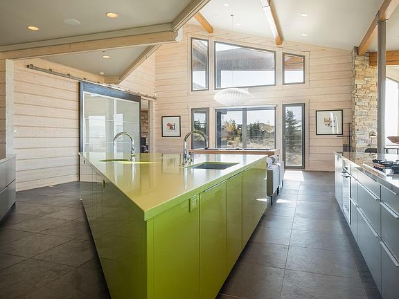 Available 12/1/22 through 12/31/22. Unique modern home overlooking the valley and capturing dramatic Park City Mountain and Deer Valley ski resort views. The open floor plan, with two living rooms, dining, games area and loft space that flow effortlessly on multiple levels are anchored by the sui generis gourmet kitchen. Miele appliances, a modular quartz center island, fitted with cabinetry, double dishwashers and two sinks. Outdoor living spaces with decks, patios and fireplaces, make this home fabulous for entertaining. Three indoor fireplaces, includes one wood-burning. Capacious angled windows allow for spectacular views from every room. Four luxe bedrooms, in suite each featuring oversized barn doors. An upper level seven seat media room. Ample four car garage and porte-cochere. Owner will pay for water. Renter responsible for gas & electric. No smoking & No pets.