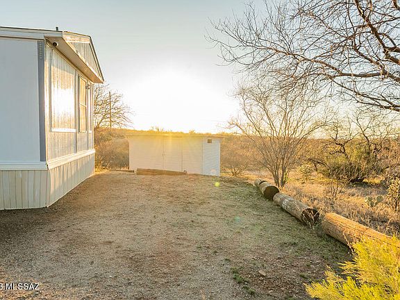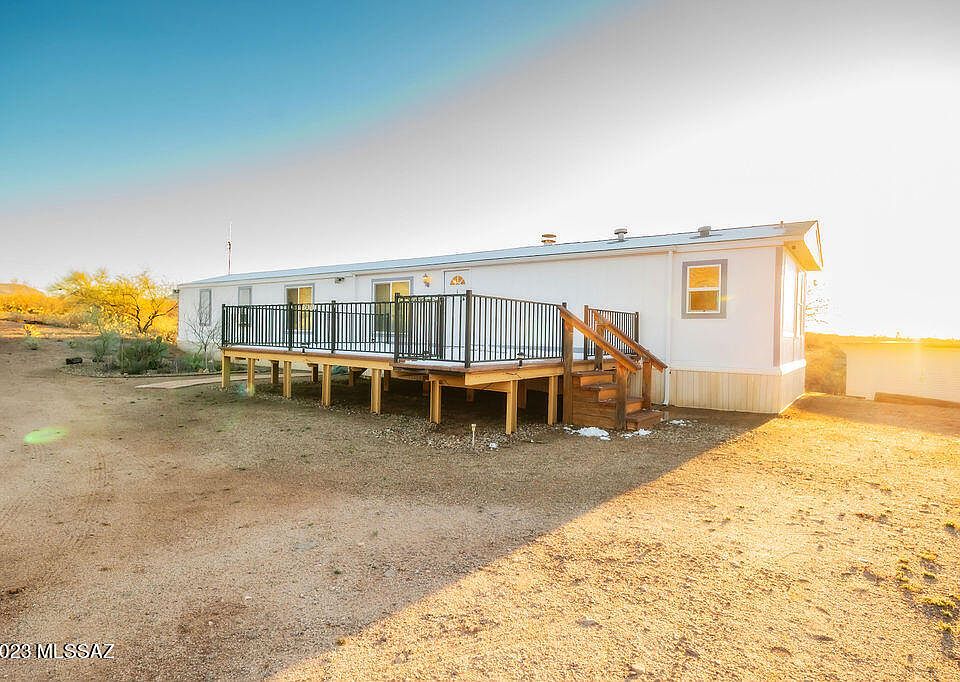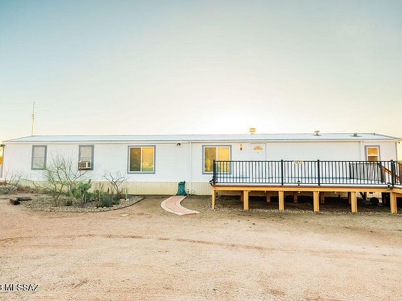 Look no further because this exceptional manufactured home is the one for you! This magnificent 1 story home built in 1996 is located at the base of Saguaro National Park. At 1,120 sq ft, you have 3 bedrooms, 2 baths, and 5.08 acres of natural area open space! This home is in immaculate condition and offers beautiful mountain views. The rear of the property is protected state land which insures your views. Enjoy having newer windows that are UV insulated as well, working appliances and updated flooring matching throughout the home. The roof of the home was redone in late 2021 and the home is wired for security cameras. Upon arriving at the home you will find a beautiful, spacious, steel framed balcony. This is the perfect spot to stargaze or even to add a hot tub of your choice. The interior layout is designed for relaxation! Upon entering, you have a wood burning fireplace with a working fan to direct the heat as well as a family great room. Enter into a beautiful backyard that is gated and surrounded by vegetation to offer a serene and quiet escape. The backyard comes with a shed for your landscaping or workshop needs and a relaxing fire pit with a custom built steel log holder. Located at the base of Saguaro National Park, this home is the perfect place for people who are looking to live in their own desert oasis away from city life. This house is ready to move in so don't wait any longer!