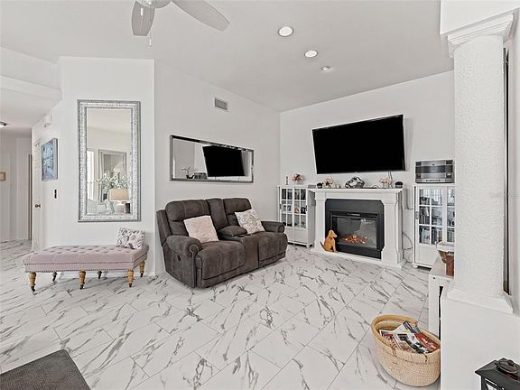 Looking for a move-in ready villa home in a 55+ community? Look no further! This deluxe villa home is perfect for those who are looking for easy living. High ceilings, light and bright rooms, and plenty of living space, this home has it all. Beautiful luxury vinyl flooring throughout, large kitchen with plenty of counter space, inside laundry closet, the attached garage and pavered courtyard make this home perfect for enjoying the Florida lifestyle. Best of all, the golf cart is included and most funishings. Don't miss out on this amazing opportunity - call today to schedule your private tour.