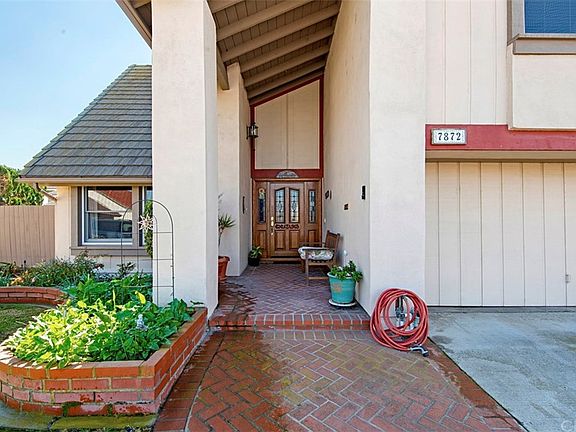 One of La Palma's finest! Welcome to the Ponderosa homes of La Palma. Location, location, location! An expansive 8,200sqft. lot sits quietly in a secluded cul-de-sac. The backyard is an entertainer's delight, featuring handsome pavers, large pool, fire pit, spacious patios, attractive landscaping, all surrounded by a solid block wall fence. This large four-bedroom, plus bonus room home is nicely designed with a chef's kitchen. Downstairs has a formal living room and dining room with pool view. The kitchen overlooks the family room with a cozy fireplace and surround sound. Spacious master bedroom features mirrored wardrobe doors, a private bathroom and vanity area. All bathrooms are nicely updated with a double-sink vanity in the hall bath. Bonus room is huge and perfect for a man cave or a she shed. The oak staircase brings out the crown molding and wood framed top-rated Anderson and Milgard windows. Plantation shutters give a finished look. Central heating and air-conditioning will keep you comfortable throughout the seasons. The garage houses its own laundry room with additional storage closets. Fantastic schools (including Oxford Academy, with testing and space available limitations), parks, shopping, restaurants, and transportation. Don't let this one get away!