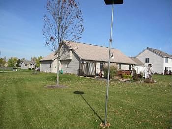 Listing agent: Judi, Phil and Brad Stinson, Call 260-469-1947 for information. One of the largest lots in the subdivision adjacent to the lake. HOME QUALIFIES FOR USDA RURAL DEVELOPMENT LOAN. The rear deck & patio make the yard great for entertaining w/landscape timer lighting. 2009-freshly painted on both exterior and interior. 2008-new dishwasher. Spanish lace ceil, Andersen wndws & natural wdwk accent the interior. The kit & dining area share an open concept. The dining area has a vaulted ceil, plant shelf & patio door to the rear deck/patio area. Merillat Kit Cab, open soffits, lazy susan, pantry & appliances remain & include Gas range, ref, micro, dw, disp, W/D. The GR shares an open concept w/ceramic foyer entry. It has a ventless corner brick frplc. A balcony overlook & 2 rooms accent the upper level. Ceiling fans accent both FR & loft area. The master has a cathedral ceiling, 7x6 walk in closet & master bath has a tub/shower unit. The garage fluorescent lighting will stay - pull down attic stairs to floored storage. 12x8 shed at the rear line. Mo utility avg: Elec $56.75/Gas $77.40/Sewer $34.06.
