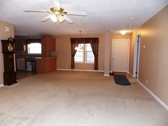 Fresh paint, open floor plan, split bedroom design, gorgeous eat in kitchen with island, plus dining room area, gas fireplace, luxurious master bath garden tub and shower, walk-in closet, 3rd bedroom has no closet , closet would be installed depending on offer , large storage shed. Agent owned