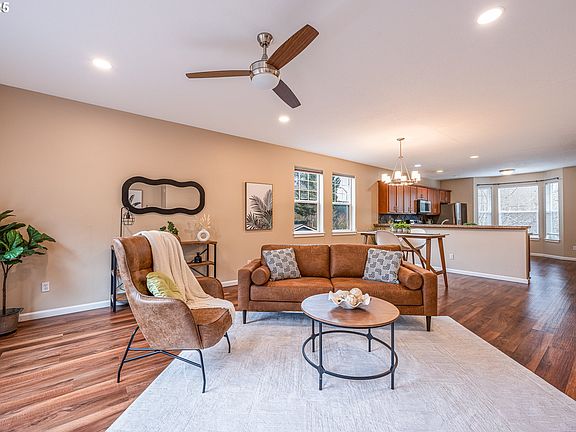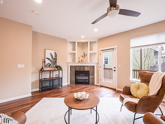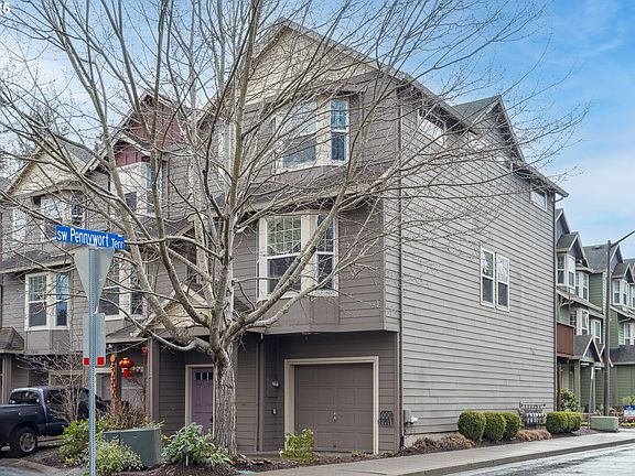Discover this fully upgraded, former model home end-unit located in the serene Bonita Townhomes community. Enter in to the spacious living area with an open-concept floorplan, perfect for both entertaining and everyday living. The main level showcases 9-foot ceilings, premium luxury vinyl flooring, and custom built-ins, creating an inviting atmosphere. Step outside to your expansive private deck, situated off the living space, offering a peaceful spot to enjoy your morning coffee.The kitchen is a home-chef’s delight, featuring an abundance of counter space and storage. Highlighted by granite countertops, stunning tile backsplash, stainless steel appliances including new refrigerator and convenient eating bar- it’s designed for both functionality and style! Retreat to the primary bedroom, complete with soaring vaulted ceilings, large bay windows, attached bath, and a spacious walk-in closet. Two additional bedrooms feature vaulted ceilings & an abundance of natural light.Additional storage and recreation space in the finished garage, offering the perfect space for a studio, gym, or home office.Convenient to Bonita Park, Fanno Creek, trails and playground, I-5 and Hall Blvd for easy, commutable access.