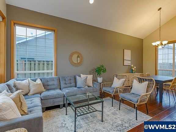 Keizer 5 BR home on quiet cul de sac close to everything. Vaulted living & dining rooms w/engineered wood floors. Great room w/gas FP open to updated kitchen featuring island, granite CT, SS appl, pantry & abundant cabinets. Large bedroom & full bathroom on main floor. Upstairs are 4 more large BR + loft area. Bath counters/fixtures recently updated. Huge vaulted primary BR & ensuite w/dual vanity, tub & lrg walk-in closet. Fully fenced yard, patio w/remote awning, recent new roof, 3 car garage, AC