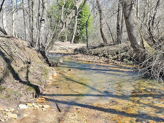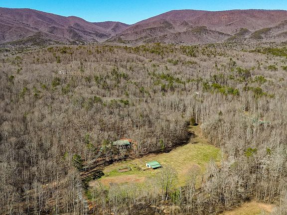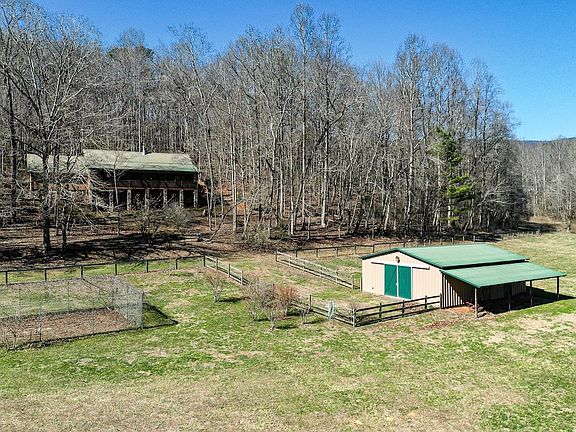 It's the good life living in a cabin perched on a hill on 8 acres with 700 + feet of beautiful Holden Creek frontage. Gorgeous fenced pasture, a two stall horse barn with power and a wash rack, garden spots (lots of muscadine) with lots of room to play. The 3/2 cabin offers one level living with a massive double sided wood burning fireplace, main bedroom has ensuite bath with double vanities, walk-in closet and tile shower. Enjoy the cool mountain breezes from either the screened in front porch or the covered sitting veranda. 2 car garage, too! Minimal restrictions tied to the deed. (i.e. no mobile homes, no commercial businesses, etc). Peaceful setting – great mini-farm!