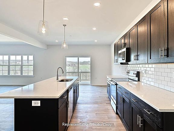 This spacious, end-of-row townhome is well-equipped with a 2-car garage, mudroom entry, and 9’ ceilings on the first floor. The kitchen, featuring a large island, stainless steel appliances, and quartz countertops with a tile backsplash, opens to the dining area with access to the rear deck. Adjacent to the dining area is the sunny family room that provides ample natural light. A versatile flex room, powder room, and closet also adorn the first floor. The 2nd floor boasts an owner’s suite with an expansive closet and private bathroom, 2 additional bedrooms, a full bathroom, and a convenient laundry room.