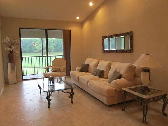 Beautifully furnished seasonal or annual rental with golf course view from screen enclosed balcony. Neutral tones adorn this unit. Tile throughout living area, carpet in both bedrooms. King size beds in 2 bedrooms. Third bedroom doesn t have a bed as it is used as a den. Master bathroom has dual sinks and vanity area. TV s in kitchen, den, and master bedroom. Greenhouse window in kitchen. Convenient pass thru from kitchen to dining room.