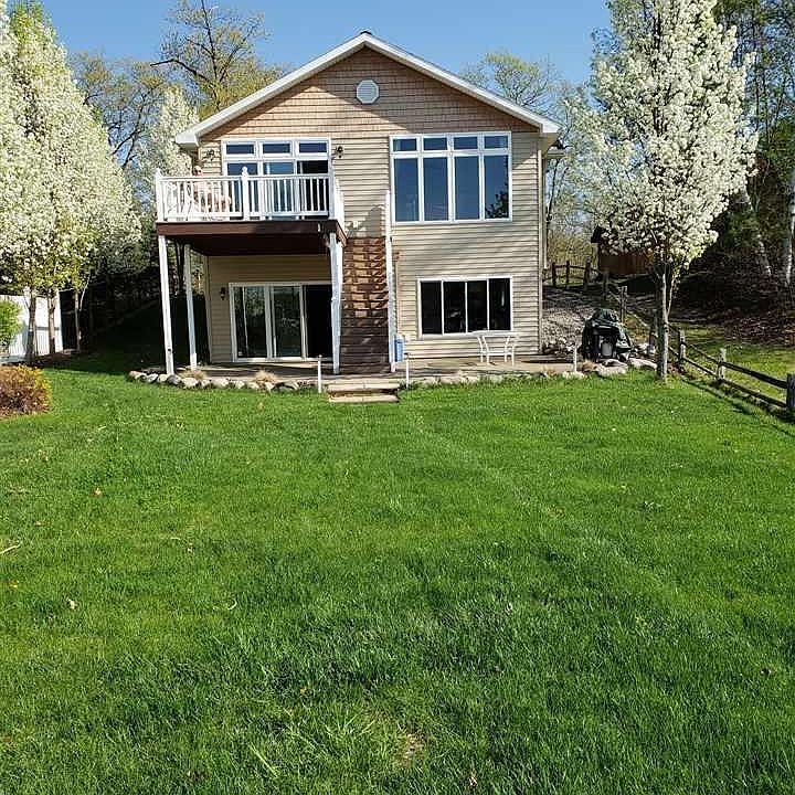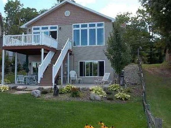 This newer custom built home,located on home on all sports Long Lake with many special features. The living room and dining room have all glass facing water,panoramic views! Beautiful nat gas fireplace in the living room has its own thermostat. There are spacious bedrooms on the main level. The master bedroom has private bath and a second full bath for guests. There are two full kitchens -main floor and walk out level. Downstairs there ares two more bedrooms, the third bath and open concept family room and kitchen, also with another beautiful nat gas fireplace. The doorwalls open to a beautiful level to the water yard and a great sandy beach with 56' on the water. An attached 2-1/2 car garage,that is finished and insulated, store your cars and/or your boat in the winter. There added bonus of the two levels , family has room to spread out or do as this owner has and rent lower level by the week or month for great additional income! The owners have made this so its easily closed off from upper level with a locked door, if you want to use the lower level as a rental to bring in extra income. This home boasts a huge lakefront deck and very large water level Patio. Gorgeous trees line the lot! Immaculate in ad out , you will be impressed by the pride in ownership in this well kept home in and out! So many features, maintenance free vinyl exterior, nat gas furnace, central air, paved drive and on and on! We hope you let us give you a tour of this beauty!