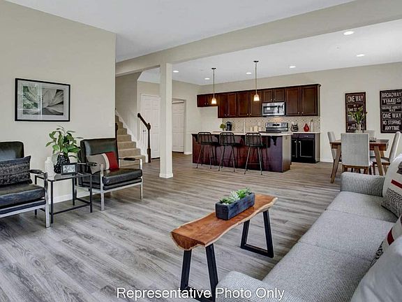 This spacious, end-of-row townhome is well-equipped with a 2-car garage with mudroom entry and 9’ ceilings on the first floor. The kitchen, featuring a large island, stainless steel appliances, and quartz countertops with tile backsplash, opens to the dining area with access to the rear deck. Adjacent to the dining area is the sunny family room that provides ample natural light. A versatile flex room, powder room, and closet also adorn the first floor. The 2nd floor boasts all 3 bedrooms, 2 full bathrooms, and a convenient laundry room. The owner’s suite includes an expansive closet and a private bathroom.