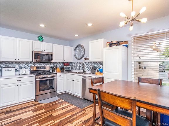 Updated and spotless! This end unit backs to greenbelt, walking path, and scenic pond. The main level living room is bright and beaming with new pecan hardwood flooring, continuing into the kitchen boasting new stainless steel appliances and eating area. The upper level offers a large master with over-sized walk in closet and two additional bedrooms. New paint inside and out. Setting at the end of the cul-de-sac provides one of the largest, private, and fenced rear yards with patio and gazebo for additional outdoor enjoyment. Next to green belt, concrete walking path and view nature's best at the secluded area pond. All this plus an attached garage. Easy access to downtown with out having to hit I-25. Makes this a perfect location for commuters.