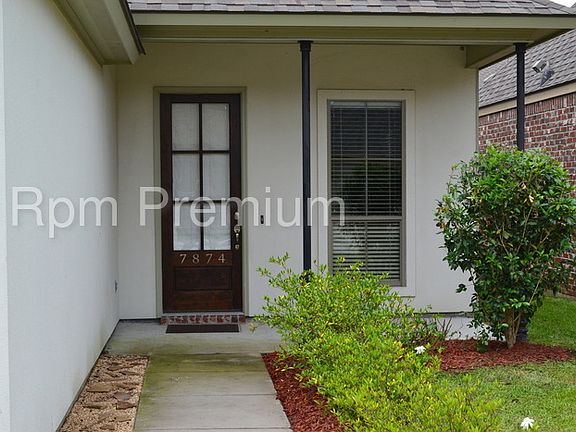 Must See! Luxurious, three bedroom, two bath home located in trendy University Villas gated community. Home features slab granite in kitchen and all baths; pass-thru mud and laundry room is equipped with washer/dryer hookups, and storage area. Beautiful cherry wood flooring in family room. Kitchen is fully equipped with beautiful hardwood cabinets, stainless appliances w/gas cook top, built-in microwave, dishwasher, garbage disposal, and refrigerator. Spacious bedrooms, with ample storage. Coveted master suite, features enormous walk-in closet, and beautiful master bath w/dual vanities, Jacuzzi tub, and stand-alone shower. Bonus: Security Service included in monthly rent. Community Center with Swimming Pool and Clubhouse. Amenities include: Dishwasher, Microwave, Refrigerator/Freezer, Covered Patio, Fenced Backyard, 2 Car Garage Conveniently located near LSU, College Drive, Bluebonnet, and Seigen Lane. Rental Terms: Rent: $1,875, Application Fee: $55, Security Deposit: $1,875, Available 2/21/18 Pet Policy: Cats allowed, Small dogs allowed Contact us to schedule a showing.