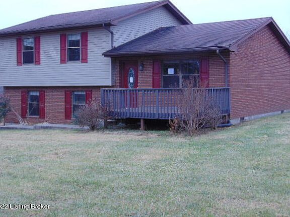 Stop by today to see this beautiful 3BR/2BA Tri-Level home in Ekron! Sitting on approximately 1.22 acres, this home is conveniently located close to Fort Knox and the Joe Prather Hwy and an easy commute to the Louisville area. The Living Room and Eat-In Kitchen are located on the Main Level with the 3 Bedrooms and a Full Bath on the 2nd Level. Kitchen has loads of cabinets and counter tops for all your meal prep. Sliding glass doors exit out to the rear deck, great for entertaining! There is also a deck on the front of the home, perfect for relaxing and enjoying the view. On the lower level you will find the Laundry Room, Full Bath and another room with access to the outside. Attached garage to keep your vehicle out of the weather and a storage shed for your outdoor gear! Stop in today!!