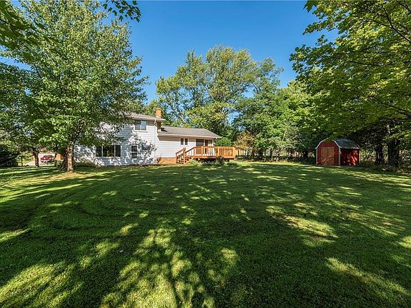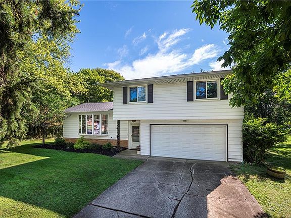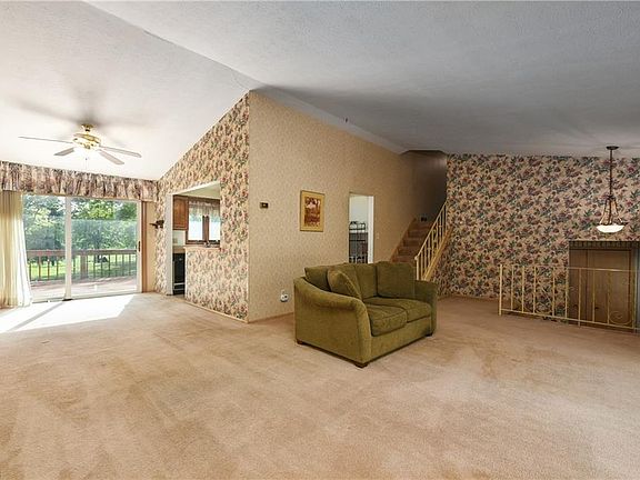 Large split level with tremendous layout. Upstairs has 4 generous sized bedrooms and a cedar walk-in closet. Master bedroom includes its own attached full bathroom. Vaulted great room has a enormous bright bay window. Open concept dining room connected to great room and kitchen. Additional family room on lower level. Finished basement with a built in bar. Wood floors under majority of carpeted areas. New roof with complete tear off (2007). All Updated windows. Double doors of back of home exit to two tier deck and expansive private wooded lot. One year home warranty included. Don't miss this one!