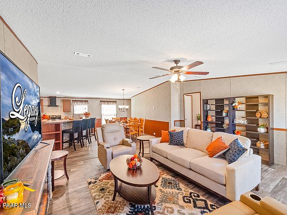 - Exterior features: Blinds, Ceiling Fan(s), Double Pane Windows, Driveway Gravel, Eat-in Kitchen, Heating system: Forced Air, Heating: Electric, High Ceilings, Kitchen Island, Laminate Counters, Liv/Din Combo, Live on One Level, Master Downstairs, View Type: Mountain(s), View Type: Panoramic