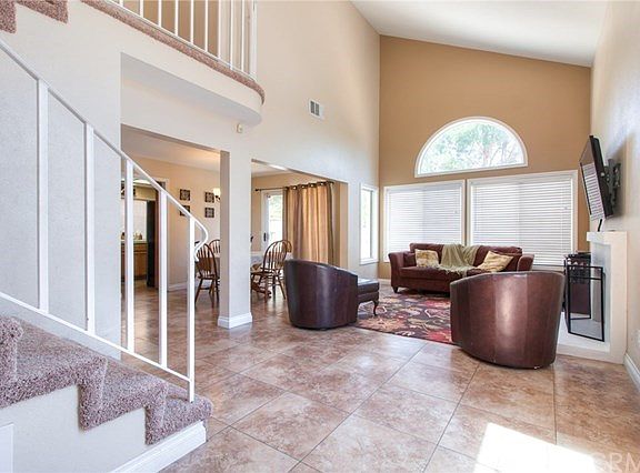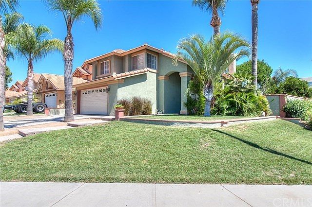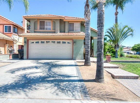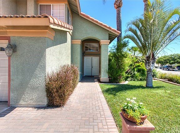 This fantastic corner lot home is move in ready and waiting for you! You will love how the double door entry opens up to the ample size family room which features high vaulted ceilings, large tile flooring, a fireplace and mantel, two tone paint as well as tons of natural light. The dining room is located adjacent to the family room and has a sliding glass door which leads to the very large backyard. The kitchen has a great breakfast bar which is perfect for the kiddos to eat at as well as a large window to fill the room with sun light. Directly off of the kitchen is a room which could be used as another living room, an office, a kid's playroom or an informal dining room, the choice is yours. The half bathroom rounds out the downstairs. Walking upstairs you will notice the brand new carpet as well as the new light fixtures up above. The two secondary bedrooms are generous in size and both have custom paint, new carpet and ceiling fans. The master bedroom also has a ceiling fan, new carpet, a walk in closet and an en suite bathroom. The backyard is huge! It features a large patio, a raised planter with retaining wall all along the perimeter of the yard, an orange tree as well as a separated gated off area on the side of the house which has garden beds, a seating area and can also be used to contain fido from running amuck. This lot has plenty of room for a pool, sports court, gazebo or whatever else you desire. PLUS A/C unit is only 2 years old!