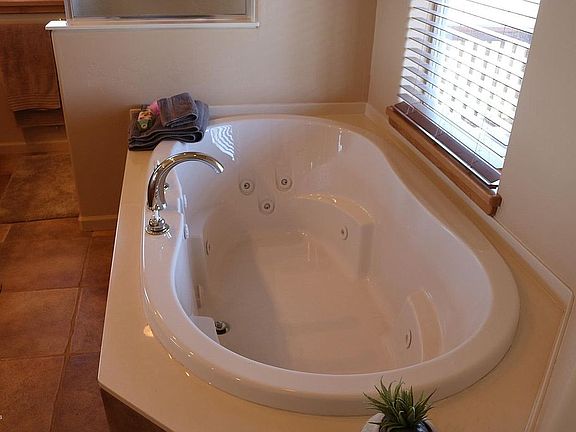 - Ceiling Fan(s), Eat-in Kitchen, Fireplace-Gas, Kitchen Island, Live on One Level, Master On Main, Raised Ceilings 9+ft, Smoke Detector(s), Walk-In Closet(s), Wash/Dry Connection, Beamed Ceiling, Counters-Granite, Spa/Hot Tub, Security System, Utility Sink, Garden Tub, Jetted Tub, Counters-Solid Srfc, Garage Door Opener(s)