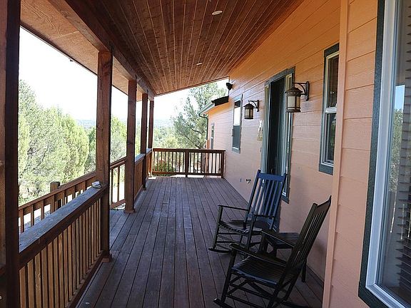 Rare find!!! Enjoy all that the Arizona lifestyle offers in this two Bedroom, two and a half-bath home with BONUS ROOM on 11.81 acres. The property adjoins the Prescott National Forest with breathtaking views of the Granite Mountain Wilderness. This location is a horse-lover and hunter’s dream. Quail, squirrels, rabbits, and deer visit the wildlife watering tank daily. Long Meadow Ranch features equestrian trails and PNF trail 625 – (Stringfield Trail) which links to countless other trail to explore and enjoy. Long Meadow Ranch was once a working ranch located in the beautiful Williamson Valley 17 miles north of historic Prescott. It is now a gated horse-friendly rural community situated in a rolling grassland/pinon-juniper habitat. The home has a full covered porch facing north where you can enjoy the best sunsets Arizona has to offer. Every direction has million-dollar views. The back of the house has two decks, one elevated. Host parties or just unwind and listen to the wind through the pines. Enjoy the sunset as it turns the sky into the classic pastels the area is known for, then watch for shooting stars while soaking in the hot tub. The ceramic tile floors on the open floor-plan main level are easy to keep clean. The vaulted ceilings and custom picture windows provide ample natural lighting. The living room can handle the Christmas tree of your dreams. A pot shelf above the built-in fireplace will show off your southwestern and Native American artwork. A uniquely beautiful Hopi-inspired hall bath will captivate visitors. The master bedroom has a sliding glass door that exits onto a small covered porch and hot tub. Soak inside in all weather in the Jacuzzi tub. A walk-in closet and additional shelved closet offer ample room for clothes and bedding. A hidden built-in gun safe offers secure firearm storage. The upstairs features a large open loft office/den area that could be converted into a bedroom. The upstairs guest bath has a sit-in shower, dual sink, and one of the best views in the house of Picacho Peak and the Santa Maria Mountains. The guest bedroom has soaring ceilings and a walk-in closet. Two air-conditioners with propane heat provide comfort in all seasons. The water heater is supplemented with a solar water heating system. An attached 25’ x 25’ two-car garage provides space for parking and hobby work areas. A garden room provides easy storage for yard tools and supplies. A detached 25’ x 30’ garage and workshop provide more parking and workshop area. A 12’ x 30’ open awning area provides covered storage for boats and toys. An RV pad provides a level space for camp trailers or an RV. There are many locations for additional horse barns or guest quarters. There is a shooting bench at the rear border of the property to allow target shooting into the National Forest.