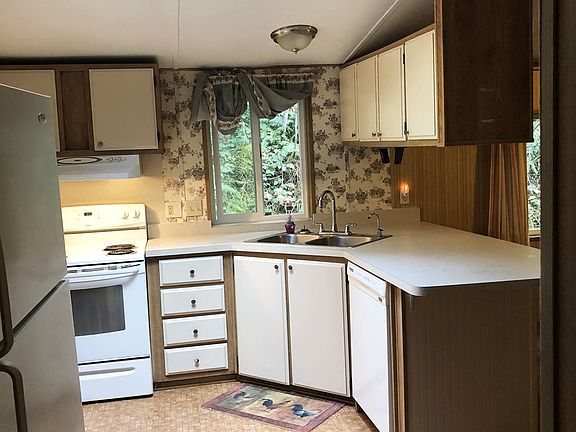 SALE IS FOR HOME ONLY. Motivated seller! Uniquely located on private land with amazing views, this 1986 Manufactured Home features a kitchen & dining room, large living room & family room, laundry area, and a large covered porch. Newer Vinyl windows, roof and exterior paint. Monthly space rent required if home stays in current location or you can have it moved if desired.