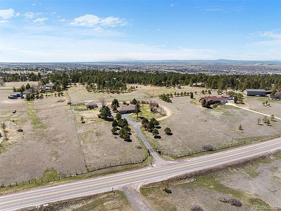 Country living but oh, so close in! This ranch-style home sits on 2.82 acres with lovely native surroundings, including Ponderosa Pines, and is just over the hill to all the conveniences you will need. The gated entrance leads you up the asphalt driveway with additional parking, circular driveway access around the house, and stamped concrete sidewalks/patios. The entry welcomes you in with hardwood floors flowing throughout the main floor. The formal living room offers custom built-ins and decorative open shelving. This home also has a formal dining room for all those special occasions. The family room is conveniently located next to the kitchen and has a wood-burning brick fireplace to keep you warm and cozy. The kitchen has a lovely picture window out to the enclosed sun porch and a walk-in pantry, butler's pantry, stainless steel appliances, and leathered granite countertops. The primary suite has French doors leading to the patio, perfect for adding a hot tub or just sitting outside enjoying the stars. Additional main floor features include a bedroom that could serve as a second study but has a full bath right next door. Family and friends will enjoy the lower-level recreational room, perfect for game or TV nights. The bonus feature is the large In-Law Suite, perfect for guests or income potential—a separate entrance with lots of windows and its own kitchen. Bring your animals, and it has a 3-stall barn with additional room for tractors/hobbies/workshops. RV carport with 30 amp outlet. This home has so many possibilities and is ready for your personal touches. Acreage living is amazing and you will love the freedom of space, including regular visiting deer & wildlife. Only 6 minutes to downtown Parker with all amenities and minutes to E-470. Hurry, and you can be in for the summer!