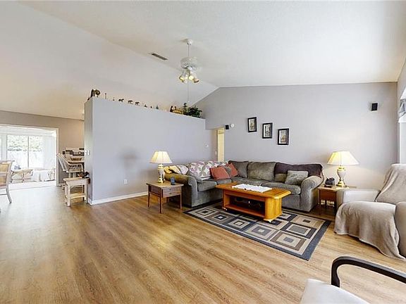 WHEN ONLY THE BEST WILL DO!! Attention to detail abounds in this stunning home. Seller took this home and made every room stand out. This home features many extras such as cathedral ceilings, upgraded waterproof wood plank flooring throughout the whole home, amazing paint selection making home inviting, Great Room that opens up to dining area, and a bonus Florida room under heat and air. Fenced yard for animals and a camera security system that will stay. The elegantly appointed kitchen offers upgraded cabinetry and Beautiful Granite Countertops and coordinated backsplash, island with bar height seating, for those quick meals. Spacious master suite with walk-in closets and en suite double sink vanity. Inside Laundry has sink with Granite to match kitchen. Garage floor was painted and is immaculate. Screen on Garage and a Bonus Storage Area/Workshop 15'.5" x 4'.8". Home also has a large storage area attached to the back of home. We included a 3D tour for you to be able to enjoy all the details of this home. Finishes and Location of this home usually come at a Premium Price, but included in this home. Roof installed in 2018.
