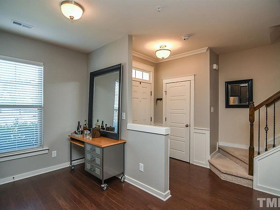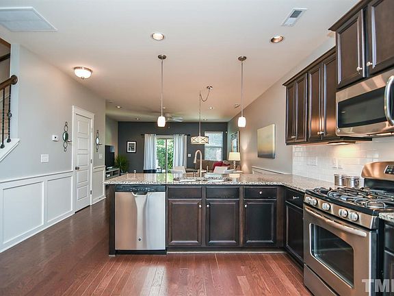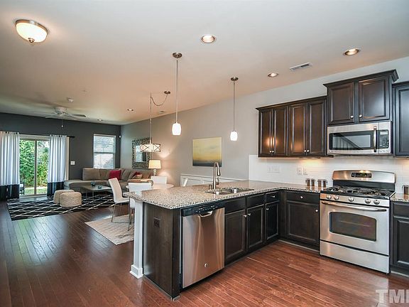 Location doesn't get much better than this! Less than 20 min to both downtown Raleigh as well as RTP! Easy maintenance free living in this tastefully appointed, like new townhouse with many upgrades including extra recessed lighting in living room, dimmers, gas range, custom paint & surround sound. Enjoy your cup of coffee on the private back patio w/wooded views or pull up a seat at your expansive bar top for an evening glass of wine. This one has all the work done for you, all you have to do is move in!