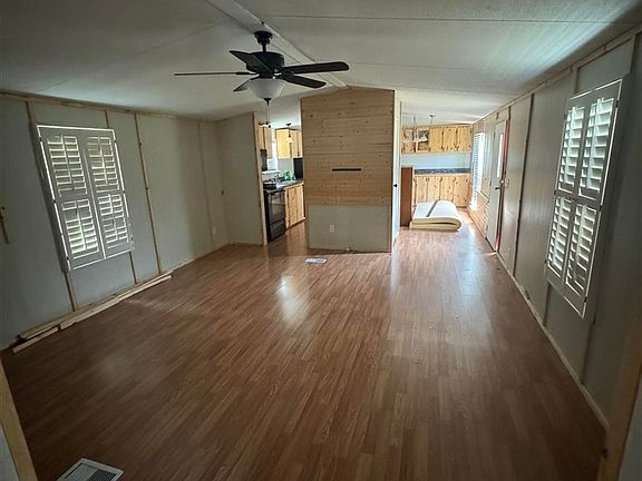 This fully remodeled single wide mobile home is 3 bed 2 bath and sits on a spacious one-acre lot, offering both privacy and room to expand. The interior has been completely updated with brand new vinyl floors throughout. Recently installed a new roof and repainted the siding, as well as a front and back porch. There is also a shed that has been completely remodeled.