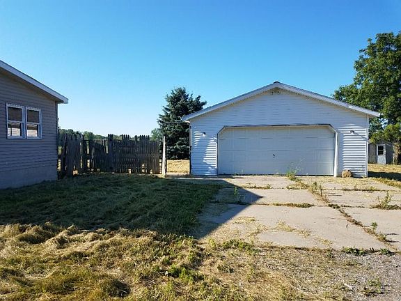 This is an older manufactured house with a 2 car detached garage, on a paved road, nice trees.