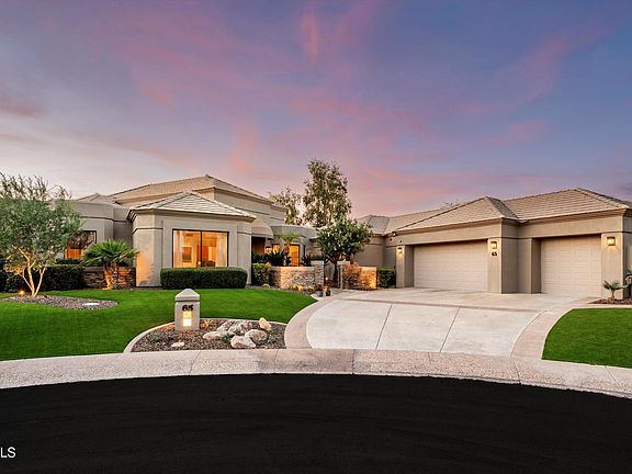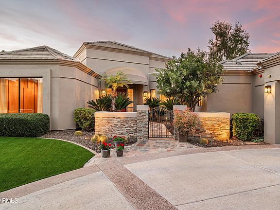 Enjoy the Gainey Ranch lifestyle in this ''one of a kind'' exceptional home in the Enclave. This timeless masterpiece- features 4200 sq. Ft , single level , 3 car garage , 3 bedroom 3 bath plus exercise room . We are situated on the largest lot in the Enclave with panoramic views of Arroyo golf course hole 1, tee box 2 with the McDowell Mountains and the 3rd fairway. Total custom design with the finest of finishes. Oversized kitchen opening to the family room with views galore.Grand great room with custom built in bar, dramatic fireplace, wood paneling and custom wall treatment throughput. Custom features include custom designed terrazzo flooring throughout, rare and exotic woodwork in every room with architectural design elements throughout including sculptured ceilings, 3 dimensional ceiling details and custom trim accents. This exceptional home is a must see!