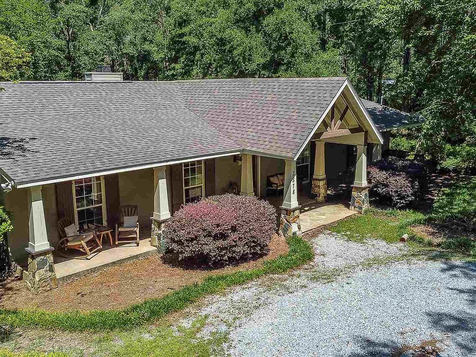 Beautiful 3-bedroom, 2-bath home situated on a quiet lane! Large serene 0.79 acre lot offers spacious, fenced backyard for entertaining and relaxing. The home has a new shingle roof and A/C unit both updated late 2020! Front entrance features a patio area for seating. Enter the home through a glass front door which also provides ample natural lighting to the living room. Cozy living room features a wood-burning fireplace and wood floors. The living room connects with a designated dining area. Stylish, open kitchen includes white cabinetry and granite counter tops! Main bedroom opens through double glass doors to the screened porch. The backyard also has a walled courtyard. Home also includes a bonus room w/ closet and window that can be used as an office space or playroom. Ceiling fans are throughout the home including the front patio and back porch. Property also features a double garage and a very large storage shed that has a loft. Beautiful mature trees offer privacy and shade!