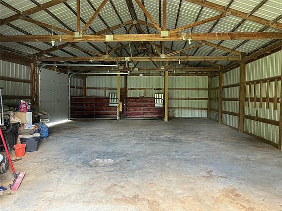 Amazing Hobby Farm! Large Metal Barn with Electricity, 2 horse stalls, tack room, garage door openers ect. Chicken coop with shed, 3 separate fenced pastures for horses or livestock with covered stalls for shade. Fenced area for your organic garden, 1 year old Pool, 3 year old hot tub, 5 month old metal roof! Interior upgrades throughout with modern wood molding trim accents, luxury vinyl plank floors, upgraded light fixtures, and beautiful kitchen with stainless steel appliances, hand painted cabinets on the island, and solid surface counters. This is the perfect quiet getaway Hobby Farm! Home has very fast high speed fiber internet access.
