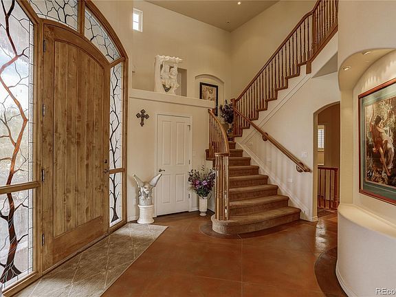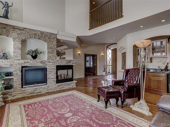 Desirable Marston Slopes overlooking Foothills Golf Course and views of the Front Range. Custon nine-foot front door framed in stained glass, spacious foyer. Living room offers two-story windows facing the mountains, custom wood shutters, wet bar, wine fridge. Kitchen has a large island, a walk-in pantry, granite counters, a butler's pantry off kitchen and breakfast nook. Formal dining room, private study with warm wood paneling floor to ceiling and a built-in desk. Radiant heat flooring on the main floor, master bedroom. Master bedroom w/sitting area, built-in bookcase and a private balcony with Front Range Views. Walkout basement is ADA compliant with a large bedroom and bath, kitchenette, rec room, projector and screen.