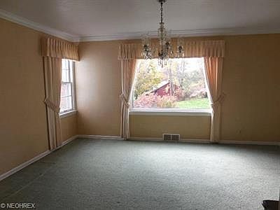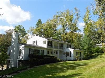 An opportunity to own a large home in Chesterland! This home is a good value with almost 3000 sqft of living space. This stately colonial greets you with a picturesque balcony. Inside the huge slate foyer opens to large rooms. A wood burning fireplace greets you in the living room and views of the wooded 2.3 acres are great! There is a first floor bedroom along with a formal dining room and a full bath on the first floor. Upstairs there are two massive bedrooms, that have walk in closets. The upstairs carpet is covering hardwood flooring and has the entrance to the balcony. The eat-in kitchen is large and has plenty of cabinets, even a huge walk in pantry. The entrance to the screened in porch is through there and allows you to enjoy the beauty of the property. The backyard has a large barn that could serve many uses, even horses! This property has the potential to be brought back to its grandeur. Be the one! Seller to escrow for septic repair/replacement.