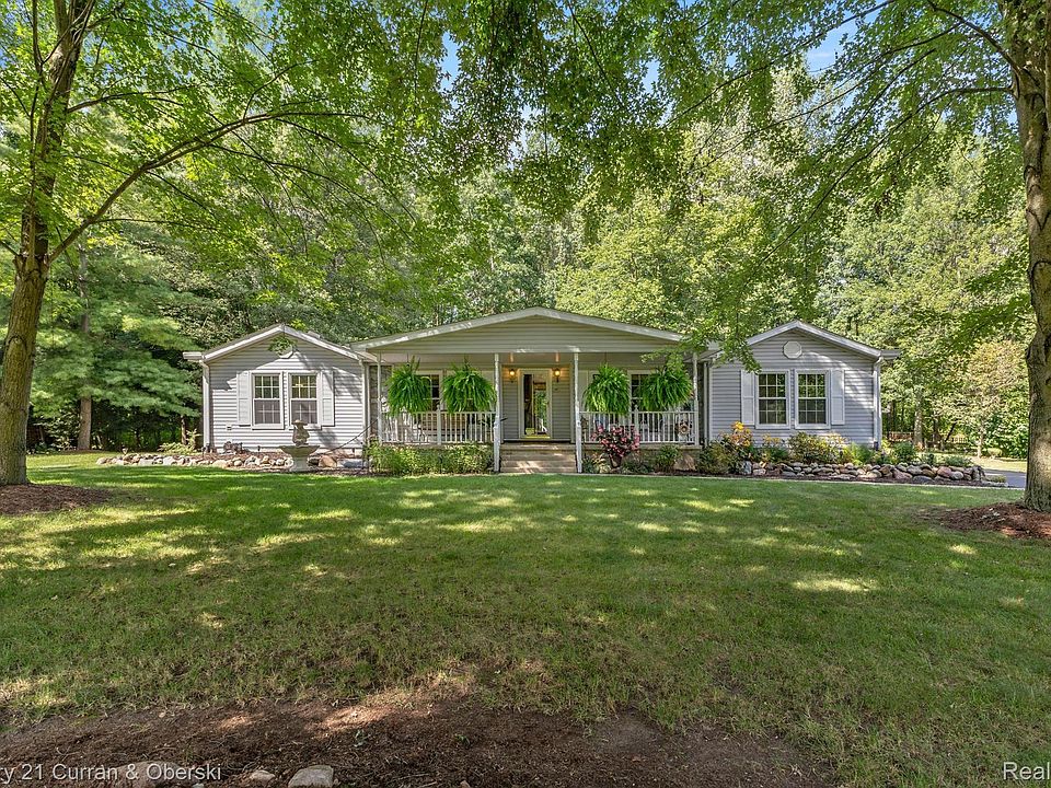 Beautiful 3 bedroom ranch home located in Augusta Twp. Milan, MI. This home is situated on a gorgeous 1.02 acre lot with many mature trees, a handmade wishing well, and a small creek bed on the west lot line. A spacious 1,670 sq. ft., open and airy ranch, surrounded by lovely perennial flower rock garden beds. Country living at its finest! Enjoy the calm and beauty of this yard from the lovely, large covered front porch.