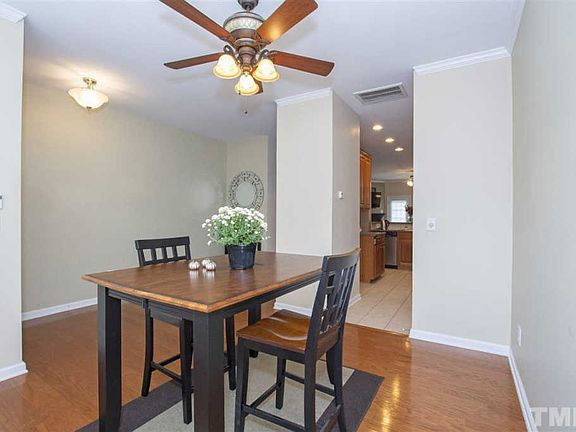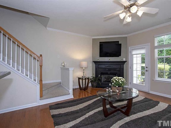 Wow! Beautiful 2 level town home in highly sought after Alexander Place! Fabulous location near Brier Creek, RDU, RTP, 540 and 40. Home has hardwood floors, tiled kitchen & Bths, SS appliances, tile backsplash & 42' cabinets. Family room w/ gas log fireplace & lots of natural light walks out to cozy patio backs to tree-lined private yard. Large master with a vaulted ceiling & ensuite bath. Huge 2nd bedroom & Double zone HVAC. Two assigned parking spot. Walk to pool/clubhouse. Wired for Google Fiber!