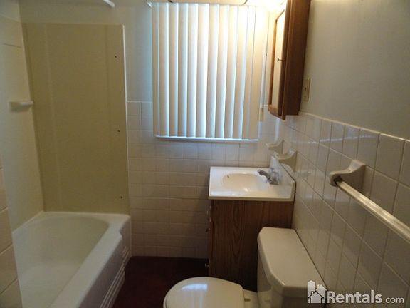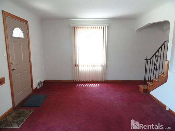 Brick side by side home. Many updates. very clean. Lots of wood work. Living room with carpet. closet. newer windows w/window treatments. dining room with ceiling fan. 2nd floor: large Master w/closet, carpet. cable Ready. Full bath. Linen closet. second bedroom with closet. Laundry shoot. Kitchen with double sink. gas stove & refrigerator. Eat in area. 2 pantries. Semi finished basement. Storage. A/C. 1 car garage w remote. Security doors. Tenant responsible for Gas, Electric & $40 for water. FREE lawn care & snow removal.