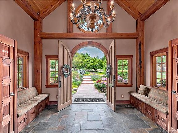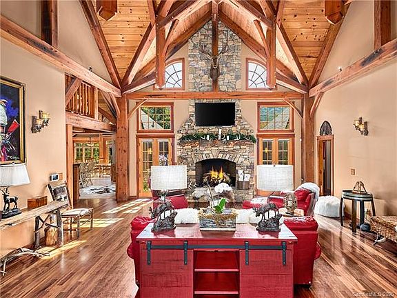 Rare opportunity to own a beautiful 15+ acre country estate minutes from Asheville. This exquisitely designed, post & beam timber frame home boasts almost 6000 sqft, breathtaking mountain views, & river frontage. Enjoy soaring ceilings, 4 stone fireplaces, & an expansive terrace. The gorgeous kitchen is a chef's dream w/all the luxury features. Watch a movie in the state-of-the art home theater, enjoy a beverage poolside, or go for a swim in the natural rock, solar-heated swimming pool w/ waterfall & beach entry. Pick apples in the orchard, go for a walk in the countryside or fly fish the hatchery-supported trout stream. Property includes a workshop, commercial grade internet, Tesla supercharger, & solar energy. Guests will love staying in the log cabin or apartment. If you want horses or farm animals, you'll appreciate the flat acreage w/ 7 fenced pastures & charming barn. Minutes from Chimney Rock, Blue Ridge Parkway, TIEC & Biltmore Estate. 32 AC Estate also listed at MLS 3662357.