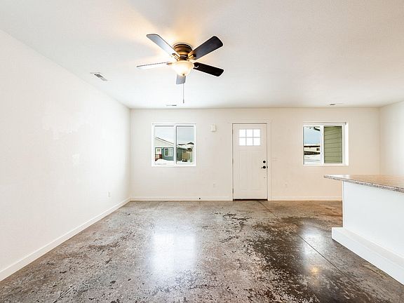 Welcome to this spacious 2-bedroom home, designed for modern living with an open, contemporary flow. The stylish kitchen boasts a large island with a cooktop, stainless steel hood vent, and an eat-in bar—perfect for casual dining and entertaining. The generous living room features sleek polished concrete floors that add to the home's modern appeal.