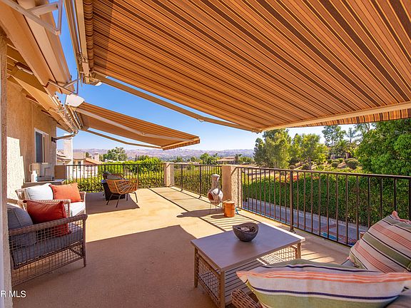 Honey Stop the CAR!!!! This home has it ALL!! 4 bedrooms, 3 baths, air conditioning, pool and spa and there is a park next door!!! Grand entrance with vaulted ceilings in the living room, formal dining with large window. One bedroom and one bath downstairs. Gorgeous kitchen with granite center island and granite counters. Stove top, double oven, built-in microwave, and refrigerator are included. Pantry with glass door. Kitchen is open to the family room with a fireplace and a sliding glass door to the amazing backyard. Upstairs features 3 bedrooms and 2 baths and a huge great room. The primary bathroom is upgraded with enlarged shower (for 2 people), jetted tub with remote control (and heated back rest), Toto high-end toilet that is self-opening and closing with heated seat and bidet remote control. Primary bedroom has a sliding glass door to the 40 feet X 14 feet upper deck with amazing views of the mountains and city lights. The awnings are auto retracting if it detects wind. Lights for your night time entertaining with remote. Great place for your morning coffee or early evening happy hour. 2nd upstairs bedroom also has a sliding glass door to the amazing upper deck. Hold on!!! You must see to believe this great room. You will notice the pool table, the fireplace, and, of course, the wet bar. (Pool table may also be included in sale). The room is spectacular for entertaining your family and friends and can you imagine holiday gatherings... Your family will also enjoy splashing in the 'volleyball' pool (shallow on both ends) and spa. The pool area is completely fenced for safety. Loads of areas for seating and gatherings also on the lower deck. It has built in BBQ island with a refrigerator, lighting, ceiling fans and television. Laundry room downstairs with washer and dryer included. 200 amp electrical panel. 39 solar panel (owned, not leased) to reduce energy costs. Community tennis court and ½ basketball court. Come by and see this lovely home today.