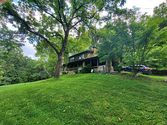 Super cute wood sided home nestled in the woods! 3 bedrooms 2 full baths offers plenty of space. Country setting on 5 acres with beautiful views and plenty of privacy. Large stone wood burning fireplace in living room, bonus room downstairs for storage, and many closets. 3 bedrooms and 1 full bath upstairs. With a few updates and a little tlc this home could be exactly what you are dreaming of! Seller says roof and heatpump are less than 5 years old. Shared spring water and septic system.