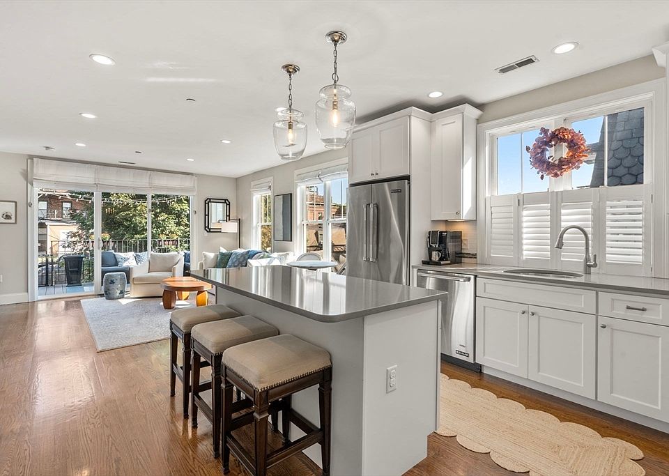 This two bedroom, two full bathroom condo (plus separate office!) is your turn-key option in a premier East Side location. Enter the sunny unit and you are immediately impressed by the custom millwork, soaring ceilings and open concept kitchen/living area complete with a wall of windows. The kitchen has high end appliances, beautiful white cabinetry, updated backsplash and solid counters. The primary bedroom easily accommodates a king-size bed and offers two custom closets, a South facing bay window, an ensuite marble bathroom with a glass enclosed shower. The second bedroom offers excellent privacy in addition to the newly installed California Closet system. The second full bathroom includes a deep soaking tub and shower enclosure in addition to designer selected tile. Upstairs, a separate bonus room allows for use as an office, gym, or sitting room- also great for overnight guests. Hardwood floors, ample storage, washer and dryer in-unit, central AC, private deck, additional storage