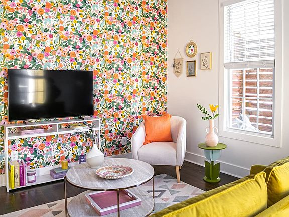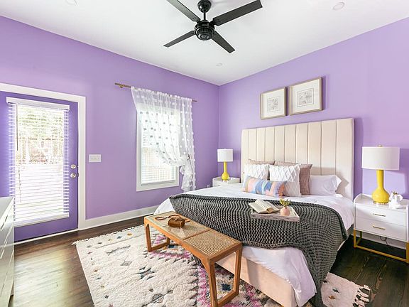 This charming side-by-side Cabbagetown duplex offers a unique living experience with its bifurcated design, featuring two reflective one-bedroom apartments: Whiskey Neat and Violet Fizz. Enjoy the dedicated patio entry that opens into a welcoming living and dining area, making you feel at home. Step into your exclusive half of the front porch patio area, complete with seating for two, and enter a bright and inviting living space. Relax on the triple-seater citron yellow velvet sofa, perfectly positioned across from the 55-inch smart TV. The open-plan kitchen and living room feature a kitchen island with counter-height stool seating for four, a slide-in gas range, a retro-style fridge, a stainless steel dishwasher, and a microwave. The kitchen is adorned with a sparkling fish scale tile backsplash and floating shelves, illuminated by pendant spotlights above the island. A pantry closet is conveniently located off the kitchen, along with access to the bathroom that connects to the master bedroom. Additionally, a full office space with a custom sliding barn door, writing desk, and desk chair provides a comfortable work-from-home set-up, complemented by natural light from the adjacent window and high-speed internet. This property offers free off- or on-street parking, ensuring convenience and ease for your stay. Dogs are welcome with a fee of $250 for the first dog and $100 for the second. Electric vehicle charging is available for an additional $5 per night. Please inquire about hot tub access, which may incur an additional fee. Nestled in the historic Reynoldstown neighborhood, this apartment offers a friendly and walkable environment. Enjoy a portion of Atlanta's famous BeltLine hike and bike trail, along with a mix of architectural styles ranging from 1920s shotgun houses to ultramodern abodes. The area is dotted with beloved independent coffee shops and eateries, while new developments like Atlanta Dairies and Madison Yards provide convenient amenities such as a grocery store, movie theater, music venue, breweries, and restaurants. Parties are strictly prohibited, with violators facing eviction and a $1000 fine. Quiet hours are from 9 PM to 8 AM, and failure to comply may result in a fine of one night's rent. Indoor smoking is prohibited and will incur a $1500 fine plus ozone remediation costs. Unauthorized guests are not allowed, and fines may apply for undisclosed guests. Check-in is available 24/7 via custom-coded keypad deadbolt locks, and all properties are equipped with Ring video doorbell cameras for added security. Includes a private office with a sliding barn door, writing desk, and desk chair, perfect for remote work. The space is enhanced by natural light from the adjacent window and high-speed internet, ensuring a productive work-from-home experience.