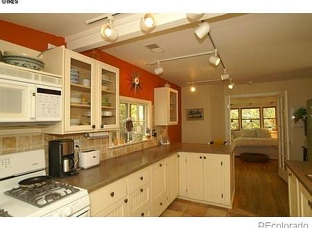 Absolutely beautiful mountain home get away in the delightful Gold Hill area! Tastefully renovated with marble tile in kitchen & bath and hardwood floors. Gourmet kitchen w/ eat-in breakfast nook & top of the line appliances. Vaulted ceilings in living room w/ glorious views & abundant natural light. Spa-like bathroom w/ heated floor. Separate structure w/ office/study w/ 1/2 bath for additional space. Level fenced lot w/ multiple patios decks. This mountain home won't last long!