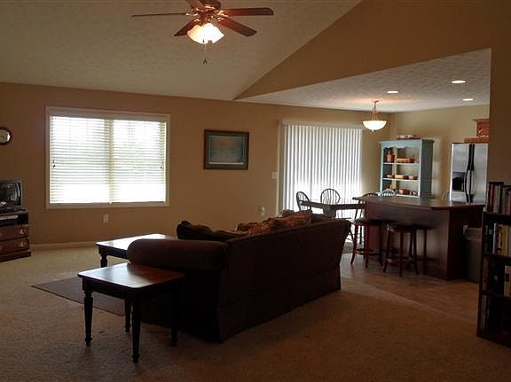 This like-new ranch style home shows barely lived in with many quality upgrades. Open kitchen has plenty of warm cabinetry with crown molding, breakfast bar, all stainless appliances and eat in area, adjoining the spacious great and dining areas with vaulted ceiling, plant shelves and neutral decor. Large master suite offers walk in closet, trey ceiling with built in lighting, and full bath has double sinks along with two more nice sized bedrooms, sharing their own full bath. Sizable laundry room with washer and dryer, shelving and service door, leading to an oversized two car garage. Sliding doors in breakfast area open to a large covered patio that overlooks the seeded back yard. Other features include, tasteful and neutral carpeting, flooring and paint throughout, seeded lawn, all appliances and low maintenance exterior-interior. Conveniently located and close to parks, downtown, shopping, restaurants, etc....This is truly a turn key home!