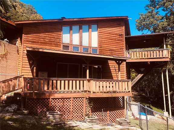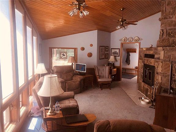 Lake front, architecturally designed home with gentle path to the private dock. Large entry hall is accessed easily from the carport. Living rm. features gorgeous cathedral ceilings, beautiful window wall and natural stone fireplace. Kitchen has plenty of cabinets and counter space with breakfast nook on one side and formal dining on the other. En-suite master and additional bedroom w/half bath are on main floor. Downstairs is a great all purpose room, built-ins with wet bar sink, 2 bedrooms and a full bath. Basement has a roll up door, workshop and more space that could be finished into living space. Outdoors there's two covered decks, a hot tub, fenced back yard , RV carport, beautiful rock bluffs across the front yard, rock pathways, and a fish pond . New Roof , just installed 9/30/2020. House has electrical transfer panel for gas generator to keep essential thing going in the case of a power outage. Come take a look . . .this may be you Haven at the lake!